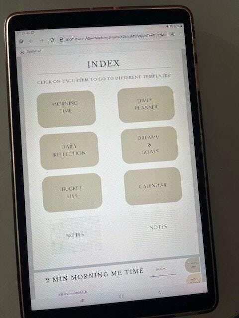 Entdecke unser neues digitales Self-Care-Journal! 📓 Mit 8 einzigartigen Seiten, darunter eine 2-minütige Morgenroutine 🌅, Tagesplaner 🗓️, Ziele 🌟, Bucket List ✨ und Kalender 📅, unterstützt es dich optimal bei deiner Selbstfürsorge und Organisation. Jetzt als sofortiger PDF-Download verfügbar 📲 – perfekt für dein Tablet oder Smartphone. Hol dir das Journal und starte in ein achtsameres Leben! 💖